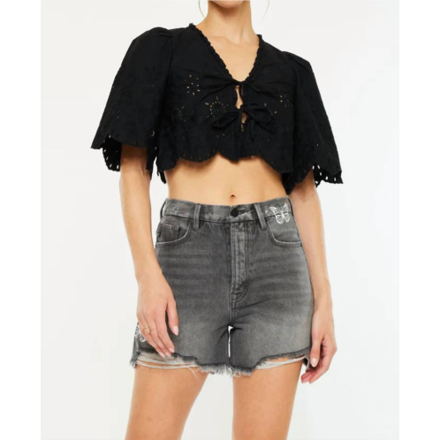 [US] KanCan ariya ultra high rise 90s boyfriend shorts in grey butterfly