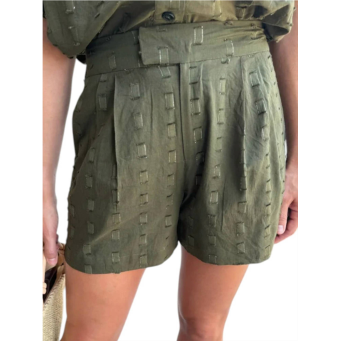 Tuck your favorite tee into these high-waist shorts for a more casual-cool feel.Perfect blend of chic style and practicality. High-rise shorts hit mid-thigh. Feature a sleek hook and eye closure, banded waist and handy side pockets. Textured fabric and front pleat details. Effortlessly stylish. Ideal for a relaxed yet polished look. Effortlessly combine comfort and elegance.