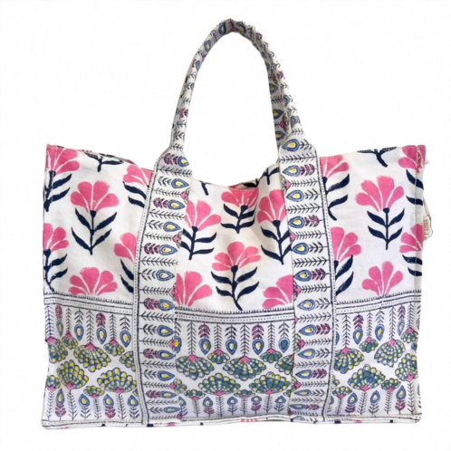 The perfect throw-it-in-and-go bag for your next weekend away or beach vacation! Its classic design will never go out of style and you'll be reaching for this bag season after season.Discover the Canvas Block Print Tote by Bell by Alicia Bell, an ideal companion for travel, beach outings, or hectic days. With its attractive pink and navy floral print, this open-top tote is crafted from durable canvas, offering ample space with its 11.75-inch height, 15.25-inch length, and 6.25-inch depth. Inside, it boasts multiple interior pockets for organization, ensuring convenience on the go. Weighing just 13oz and imported from India, this chic and practical tote is unlined, giving it a lightweight feel.