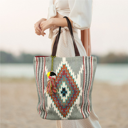 [US] FASHNZFAB handwoven boho geometric aztec pattern tote bag