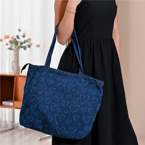 [US] FASHNZFAB heart pattern denim tote bag / shoulder bag