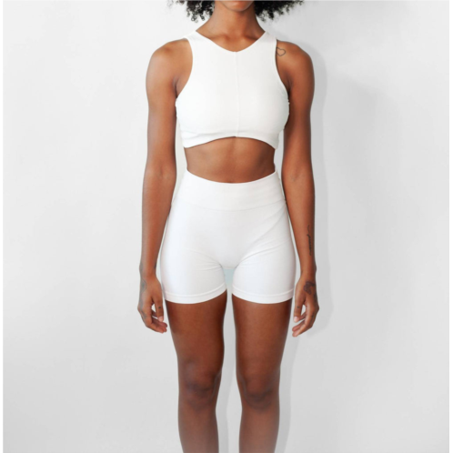 Bike shorts you don't even need a bike for! We are here for the bike short trend.Experience the perfect blend of style and comfort with the White Half Tights by knotWTR, tailored specifically for women. Made from high-quality, stretchable, moisture-wicking fabric, these short leggings ensure a snug fit and unrestricted movement, ideal for running, cycling, or yoga. Featuring a reinforced non-slip waistband, they offer added support alongside their sleek white design. Closure - Pull on.
