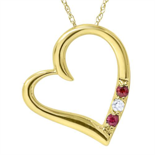 [US] Pompeii3 diamond & ruby heart pendant 3-stone 10k yellow gold with 18 chain