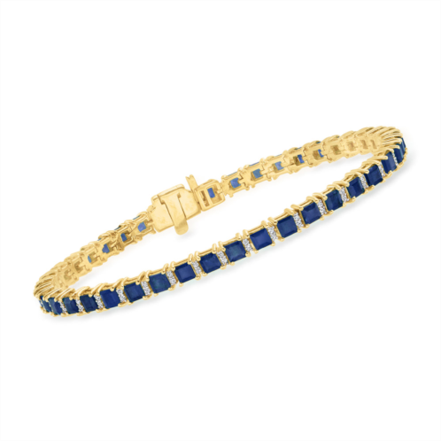 Established in 1952, Ross-Simons brings jewelry classics into the modern era. With its expressive color and traditional appeal, this 10.00-12.00 ct. t.w. square sapphire tennis bracelet is an absolutely stunning piece for any fine collection, but especially one of a September baby. For added opulence, .48 ct. t.w. diamond rounds sparkle from either side of the velvety blue gems. Set in polished 18kt yellow gold over sterling silver. Double-latch safety. Box clasp, diamond and sapphire tennis bracelet. Each Ross-Simons item arrives in a fine jewelry presentation box. Shop Ross-Simons jewelry risk-free as all items include a 30-day, 100% money-back guarantee.