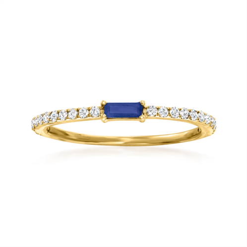 A trusted jeweler in 1952, Ross-Simons is dedicated to quality and value. In this minimalist yet mesmerizing ring, a 0.10 carat baguette sapphire is highlighted by .19 ct. t.w. diamonds. Set in polished 14kt yellow gold. 1/16' wide. Sapphire and diamond ring. Each Ross-Simons item arrives in a fine jewelry presentation box. Shop Ross-Simons jewelry risk-free as all items include a 30-day, 100% money-back guarantee.
