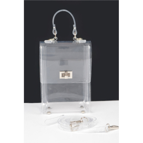 Step into the spotlight with the Radiance Clutch, a bold and modern accessory designed to showcase your style with confidence. Crafted from clear PVC and accented with sleek mixed metal hardware, this structured top handle flap clutch offers a striking balance of minimalism and glamour. Its transparent design makes it perfect for curated essentials, while the polished hardware adds a refined edge. Whether you're heading to a night out, a special event, or a fashion-forward day look, this clutch ensures all eyes are on you. Clean lines and contemporary charm make it a standout addition to your collection.