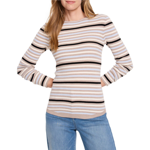Introducing the NIC+ZOE Striped Ribbed Sweater T-Shirt, a stylish and comfortable addition to your wardrobe. This pullover sweater features blue multicolor stripes, adding a pop of color to your outfit. Made from a blend of cotton, viscose, nylon, and spandex, this sweater is not only fashionable but also soft and stretchy for all-day wear. With a length of approximately 23 inches from shoulder to hem, this t-shirt is perfect for pairing with jeans or leggings. Hand wash only. Imported.