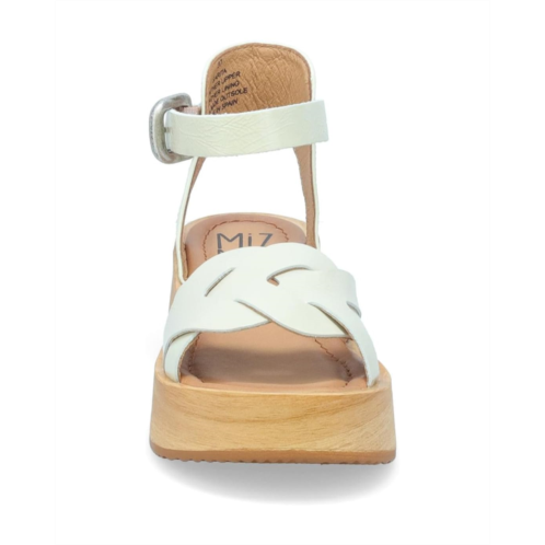 Interwoven straps make the Miz Mooz Sarita Sandals perfectly whimsy and chic. The round toe pair features leather upper construction with buckled ankle strap closure and platform heels.
