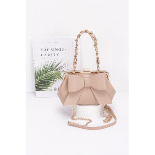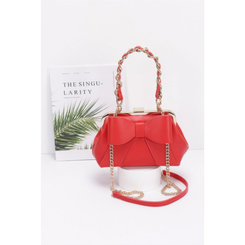 Make an elegant entrance with the Faux Leather Ribbon Chain Handle Party Clutch, a stylish accessory designed for evenings out and special occasions. Crafted from smooth faux leather, this compact clutch features a sleek silhouette accented by a delicate ribbon and chic metal chain handle. The structured design provides enough room for your essentials, while the mix of materials adds modern sophistication. Perfect for pairing with cocktail dresses or dressy separates, this clutch delivers both function and flair.