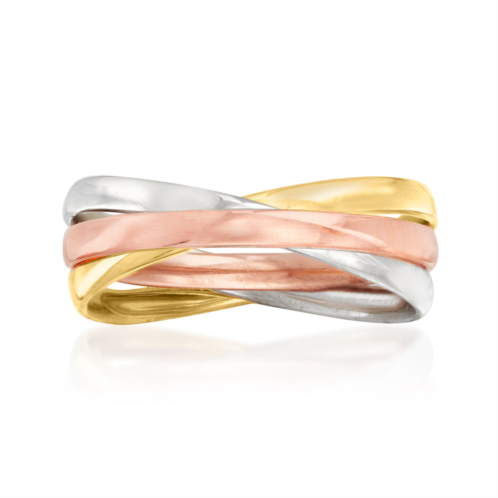 Ross-Simons travels the world to find beautiful, high-quality styles at the best prices. Mix and match with all your favorite metals! Crafted in Italy, this ring glistens with interlocking twists of polished 14kt yellow, white and rose gold. 1/4' wide. 14kt tri-colored gold ring. Each Ross-Simons item arrives in a fine jewelry presentation box. Shop Ross-Simons jewelry risk-free as all items include a 30-day, 100% money-back guarantee.