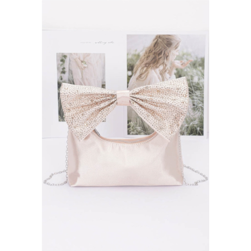 Graceful and glamorous, the Rhinestone Hotfix Bow Handle Nylon Clutch is designed to make a dazzling impression. Featuring a sparkling rhinestone-encrusted bow handle and a smooth satin-like nylon finish, this clutch combines luxury with playful elegance. Perfectly sized for evening essentials, it elevates any outfit for weddings, galas, or a night out.
