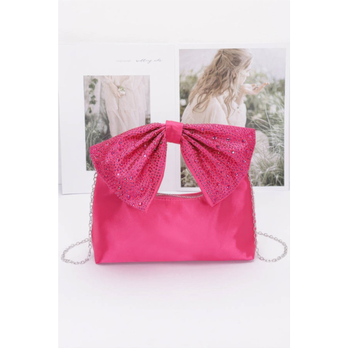 [US] FASHNZFAB rhinestone hotfix bow handle nylon clutch