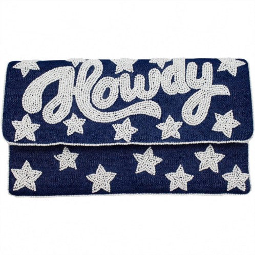 The perfect clutch for an evening out on the town.Make a statement with the Women's Howdy Denim Clutch Bag by La Chic Designs, crafted to add a fun edge to any concert outfit. This navy blue clutch is made from durable denim and adorned with eye-catching beaded star accents, perfect for showcasing your personality. Whether you're a frequent concert-goer or just love unique accessories, this clutch is a chic and stylish choice that's sure to capture everyone's attention.