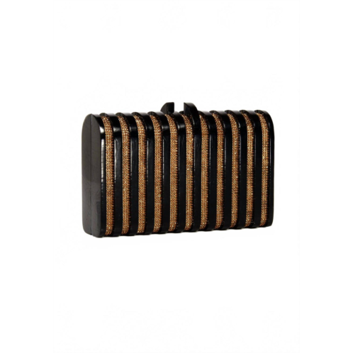 Don't be mistaken by its size, this little bag holds more than you'd expect!Introducing the Women's Rodeo Clutch by Emm Kuo, a sophisticated accessory in black/brown featuring a timeless rectangular silhouette. This clutch, measuring 180mm x 110mm x 50mm, is meticulously handcrafted with Black Tab Shell, Black Resin, and adorned with Light Amber Swarovski Crystals. The interior boasts a Black Matte Satin Lining, and it includes a 44' detachable snake chain for versatile styling. Finished with a strong magnetic closure, this clutch is perfect for any elegant occasion.