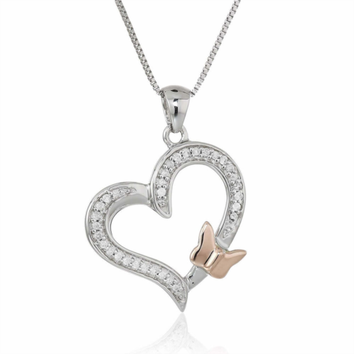 [US] Vir Jewels 1/10 cttw diamond butterfly and heart pendant 14k white and rose gold with chain