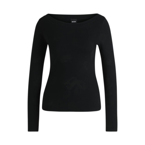 A versatile sweater with a wide neckline, by BOSS Womenswear. This jacquard-knitted top is blended with stretch for comfort in movement.