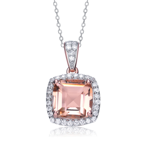 [US] Genevive sterling silver rose gold plated morganite cubic zirconia halo drop necklace