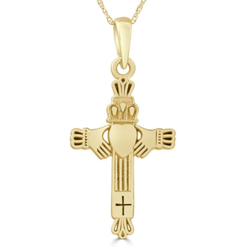 [US] Pompeii3 14k white or yellow gold gold celtic cross claddagh pendant necklace 1 tall