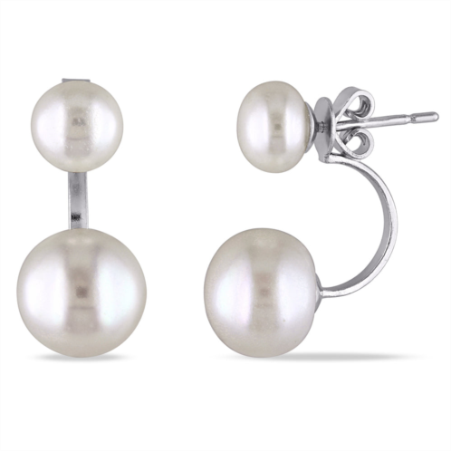 [US] Mimi & Max 7-7.5mm and 10-10.5mm white cultured freshwater pearl earrings with jackets in sterling silver