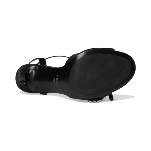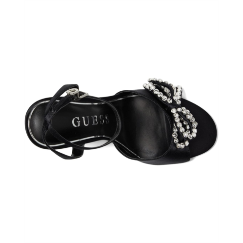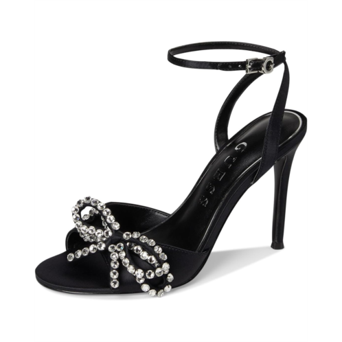 Make your statement wearing GUESS Charmin. These show-stopping dress sandals feature a denim upper adorned with dazzling rhinestones and a playful tubular bow, perfect for turning heads at every occasion. The open-toe silhouette and stiletto heel exude elegance, while the adjustable buckle ankle strap ensures a secure, customized fit. Inside, a cushioned insole delivers all-day comfort, and the flexible synthetic rubber outsole moves with every step, letting you dance, strut, and celebrate in style. A modern twist on timeless glamor, Charmin blends youthful energy with sophisticated flair, reflecting GUESS's legacy as a global lifestyle brand since 1981.