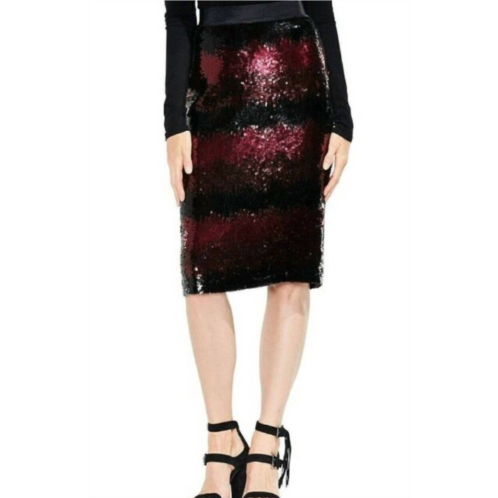 Show off just the right amount of skin in this beautifuly designed midi length skirt.Embrace timeless elegance with the VINCE CAMUTO Ombre Stripe Sequin Lined Pencil Skirt. This midi skirt is embellished with layered black and burgundy sequins, offering an ultra-shimmery look. Composed of 97% Viscose and 3% Elastane, and fully lined with 100% Polyester, it features a stretch waistband and a convenient back zipper. Dimensions - Waist 15', Hips 17.5', Length 25'. Care instructions - Hand wash, hang dry.