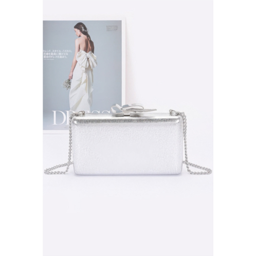 - Features a luxurious metal ribbon top case and chic chain detail