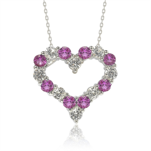 [US] SUZY LEVIAN sterling silver pink sapphire & diamond accent alternating heart eternity pendant