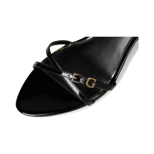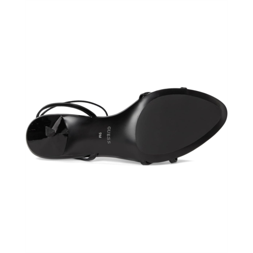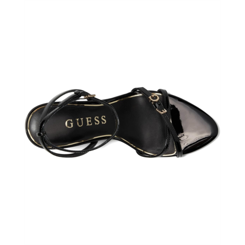 Make a grand entrance styling GUESS Connee. Designed to steal the spotlight, this strappy dress sandal brings together sleek sophistication and all-day comfort. Crafted with a smooth leather upper and secured by an ankle-wrap buckle closure, it ensures a perfect fit while the open toe keeps the look chic and versatile. The front strap is elevated with the signature metal 'G' ornament, a subtle nod to GUESS heritage style. A sculpted metal stiletto heel adds wearable height, making every stride confident and striking. Inside, a plush cushioned insole delivers lasting support, while the flex outsole moves seamlessly with you, ensuring comfort doesn't take a backseat to style.