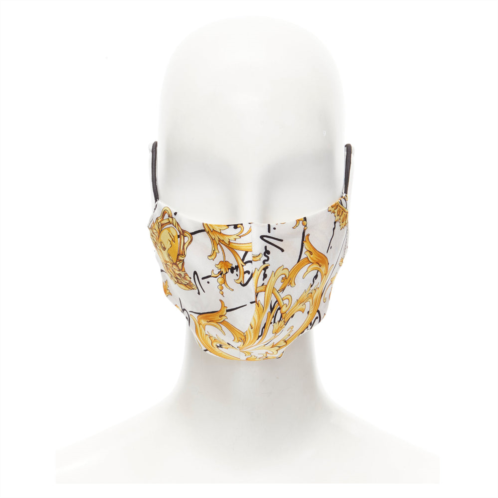 VERSACE Gianni Signature gold Medusa Baroque 100% silk face maskReference - TGAS/B01197Brand - VersaceDesigner - Donatella VersaceModel - Gianni Versace SignatureMaterial - SilkColor - GoldPattern - FloralLining - SilkExtra Details - Worldwide Exclusive silk mask for Hong Kong boutique only. GV signature 100% silk mask. Logo tag at side of mask.Estimated Retail Price - USD 300CONDITION - Condition - Unworn in mint condition, with tags. Comes with - Designer tags. Designer box. MEASUREMENTS - Width - 19cm / 7.4'Versace. This Versace . Measurments - width - 190 mm