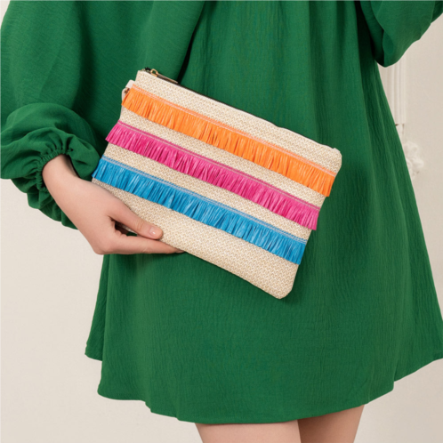 [US] FASHNZFAB raffia fringe accented flap clutch bag