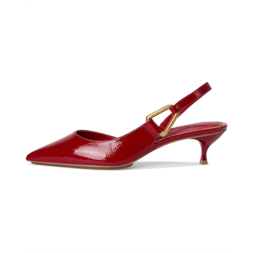 The Vince Camuto Inari Lasso Buckle Slingback Pumps feature a glossy naplack finish that radiates confidence and sophistication. Their sleek, pointed toe shape elongates the leg, while the delicate kitten heels offer a perfect balance of elegance and comfort. A gold-tone geometric accent on the slingback strap adds a modern touch, enhancing its chic appeal. These heeled pumps are made of a leather upper, rubber insole, and polyester lining. Ideal for both day and evening wear, the versatile design of these slingback pumps effortlessly transitions from office attire to special occasions, making them a must-have statement piece in any wardrobe.