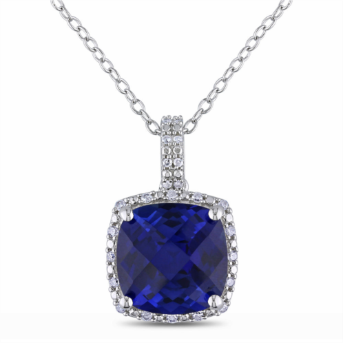 [US] Mimi & Max 1/10 ct tw diamond and 5 3/4 ct tgw created blue sapphire square pendant with chain in sterling silver