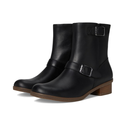 Take your style statment to the next level wearing the Dansko Delphine Boots. With full waterproof construction, this mid-calf boot looks beautiful with a stylish hardware and endless comfort. These raised round-toe boots feature a side-zip closure, double-buckle detail, and a leather stacked heel with water repellent treatment and TPU toplift. These are crafted with a waterproof burnished leather upper, leather lining, chrome-free, leather covered, removable molded PU footbed with memory foam for added cushioning, and the Dansko Natural Arch technology ensures added support.