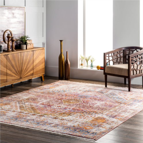Elevate your space with this tribal medallion inspired design. Machine-made using durable synthetics, each piece features a beautiful color palette that is purposefully distressed to mimic that iconic vintage look.