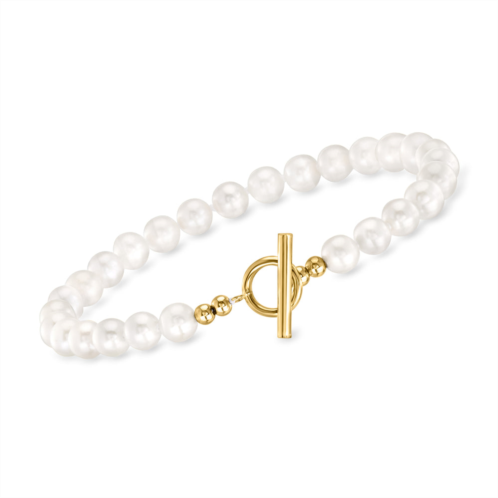 Ross-Simons is always looking for new ways to reinvent essential jewelry styles. Classy upon first glance, this toggle bracelet has range! Radiant 5.5-6mm cultured freshwater pearls offer a traditionally elegant look, but a modern 14kt yellow gold toggle clasp and spacer beads invite you to reimagine this style with your more casual outfits. White pearl toggle bracelet. Each Ross-Simons item arrives in a fine jewelry presentation box. Shop Ross-Simons jewelry risk-free as all items include a 30-day, 100% money-back guarantee.