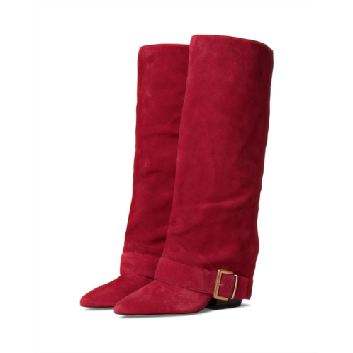 The Steve Madden Illuzion boots are calf-high, fashion boots that are perfect to make your style statement. These heeled boots are made of a leather upper, polyurethane insole, and nylon lining. The buckle closure ensures a secure fit. Walk with confidence wearing these tall boots.