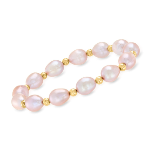 Ross-Simons travels the world to find beautiful, high-quality styles at the best prices. For an easy-to-wear piece in a fresh and feminine hue, mix this pink stretch pearl bracelet in with your favorite stack of arm candy! 8-9mm pink cultured freshwater oval pearls alternate with polished 14kt yellow gold spacers for a chic look that's completely fuss-free. 1/4' wide. 14kt gold and pink pearl bracelet. Each Ross-Simons item arrives in a fine jewelry presentation box. Shop Ross-Simons jewelry risk-free as all items include a 30-day, 100% money-back guarantee.
