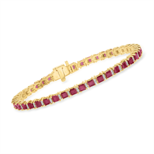 Established in 1952, Ross-Simons presents contemporary styles with a timeless appeal. With its rich color and traditional appeal, this 9.50 ct. t.w. square ruby tennis bracelet is an absolutely stunning piece for any fine collection, but especially one of a July baby. For added opulence, .51 ct. t.w. diamond rounds sparkle from either side of the robust ruby gems. Set in polished 18kt yellow gold over sterling silver. Double-latch safety. Box clasp, diamond and ruby tennis bracelet. Each Ross-Simons item arrives in a fine jewelry presentation box. Shop Ross-Simons jewelry risk-free as all items include a 30-day, 100% money-back guarantee.