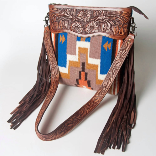 This crossbody bag will be your go-to bag of the season.Introducing the Women's Large Crossbody Messenger Bag by American Darling, a standout accessory in classic brown leather. Made from high-quality, genuine full-grain leather, this bag features a delicate, hand-tooled pattern and is finely crafted by the best artisans. With solid antique finish metal fittings and a secure YKK zipper, it combines durability with elegance. The adjustable shoulder strap enhances its versatility, and the generous 16-inch height and 15-inch width ensure ample space for your essentials.