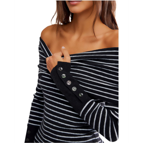 - Free People Evergreen Sweater: This cozy off-the-shoulder sweater is the perfect addition to your everyday wardrobe. The classic fold-over neckline and long fitted sleeves create a stylish look that can be dressed up or down. With buttoned cuffs and a trendy striped pattern, the soft, stretchy wool blend sweater is sure to become a staple in your closet.