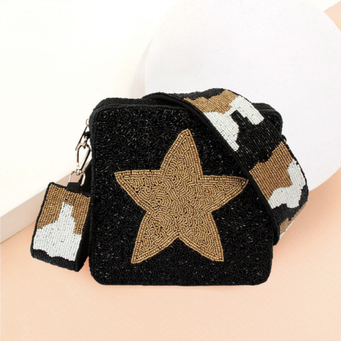 [US] FASHNZFAB seed beaded star accented square camouflage crossbody bag