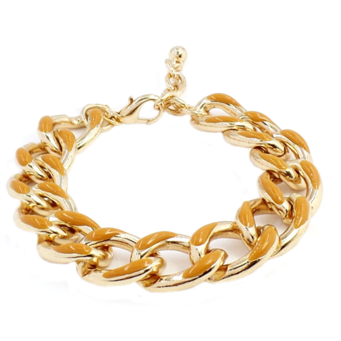 18K GOLD PLATED SAND AND CARAMEL ENAMEL LINK BRACELET 7'+ 2' EXT WITH A LOBSTER CLAW CLASP CLOSURE WILL BRING YOU A PERFECT COMBINATION TO YOUR OUTFIT, AND WILL KEEP YOUR STYLE WITH A NICE TOUCH OF COLOR.