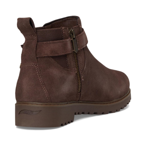 Indulge yourself in the supportive side of winter boot style, wearing the SKECHERS Arch Fit Marlie - Flirty Vibes boots. These ankle-high boots feature a soft suede upper with a buckle wrap detail, plus a zippered side closure. Their removable, patented Skechers Arch Fit foam insole with podiatrist-certified arch support helps mold to your foot to reduce shock and increase weight dispersion. The upper of these boots is treated with 3M Scotchgard to resist water and stains, while the fabric lining provides all-day comfort. These boots feature a podiatrist-designed shape that is developed with 20 years of data and 120,000 unweighted foot scans.