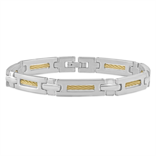 [US] Pompeii3 mens steel and dark gold wired 7mm flexible link 8.5 bracelet