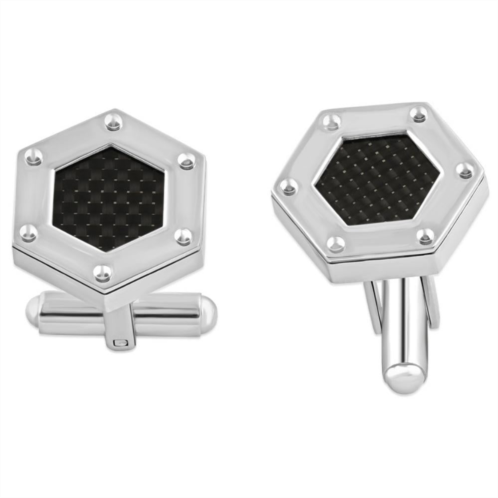 [US] Pompeii3 mens stainless steel and black carbon fiber hexagon polished 16.5mm cufflink
