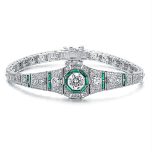 [US] Genevive sterling silver white gold plating with colored baguette cubic zirconia link bracelet