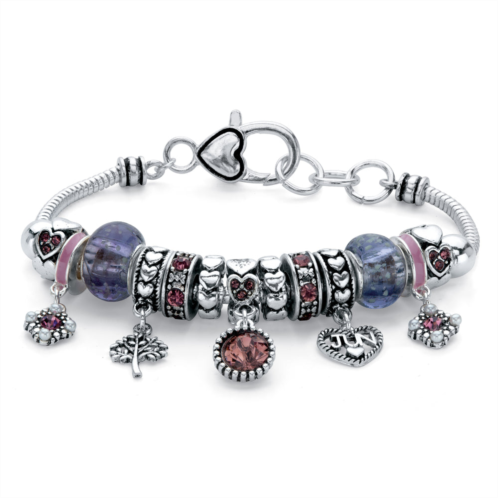 [US] Palm Beach Jewelry birthstone silvertone bali-style beaded charm bracelet 8