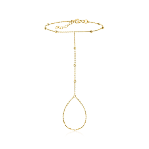 With a commitment to quality and affordability, Ross-Simons presents timeless jewelry for the modern woman.RS Pure. Modern designs that complete your outfit and complement your personality.Make a connection with our dainty hand chain bracelet. Crafted in glittering 14kt yellow gold, 2.5mm beads are stationed alone the simple cable chain, wrapping the wrist and middle finger for a chic and unique look. Textured and polished finishes. Includes a 1' extender. Lobster clasp, 14kt yellow gold beaded hand chain bracelet. Each Ross-Simons item arrives in a fine jewelry presentation box. Shop Ross-Simons jewelry risk-free as all items include a 30-day, 100% money-back guarantee.