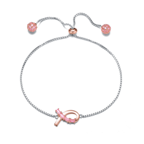 [US] Genevive sterling silver two tone with pink cubic zirconia loop bracelet