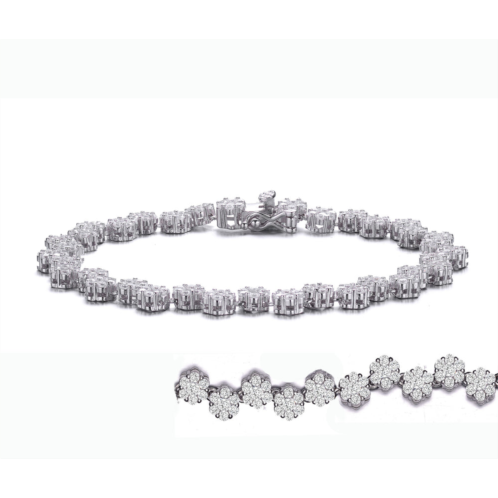 [US] Genevive sterling silver with rhodium plated clear round cubic zirconia cluster flower link bracelet